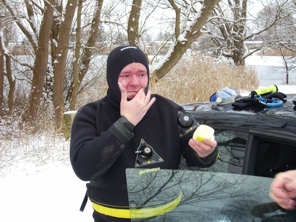 Der TCV hat sein Antauchen wieder auf Fehmarn absolviert. Ca. 18 Tauchen fanden halbtrocken oder trocken den Weg ins 8°C kalte Ostsee-Wasser. Die Sicht war o.k. und einige Fische (u.a. Flunder und Seehasen) kamen auf dem Weg vorbei. Danach wurde ordentlich gegrillt, geschnackt und dem Wind Stand gehalten.