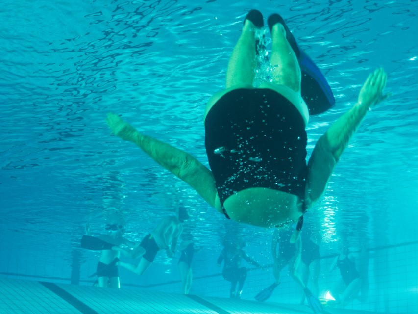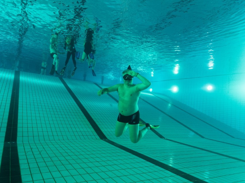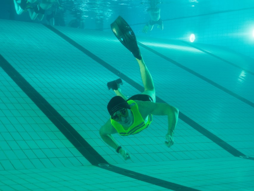 Am letzten Trainingstag 2023 vor den Feiertagen trafen wir uns zu unserem traditionellen Weihnachtstraining in der Rahlstedter Schwimmhalle. Diesmal hatten die 25 Vereinsteilnehmer die Aufgabe, einen schwimmenden Weihnachtsbaum zu schmücken. Frank erklärt die Aufgaben: 25 m schwimmen je ein Licht mit einem Band verzieren und mit einer Wäscheklammer an dem Baum fixieren. Die „Baumkugeln“ (Tischtennisbälle) wurden in einer Kompresse eingewickelt und ebenfalls mit einem Band am Baum fixiert. Alle arbeiteten ganz emsig und schnell war klar, zusammen geht es besser und so wuselten 25 TCVler im Wasser, um die Aufgaben zu erfüllen. Dank der 4 Baumfixierer im Wasser, war die Aufgabe gut zu schaffen und zum Schluss erstrahlte ein sehr schön geschmückter Baum auf der Wasseroberfläche.
