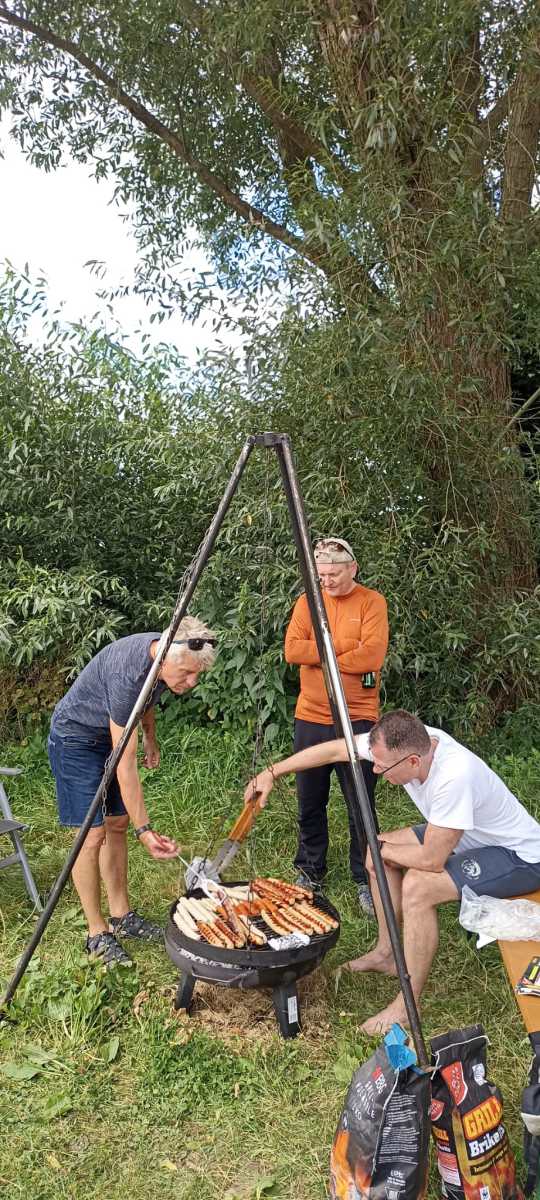 Einige Aktive ließen sich von den mäßigen Sichtweiten im See nicht beeindrucken und tauchten für einen Tauchgang ab. Ein paar Barsche, kleine Fischschwärme und die obligatorischen scheuen Krebse gab es zu sehen. An Land vertilgten die TCVler anschließend ordentliche Tauchernahrung: Würstchen und Fleisch vom Grill sowie Chili con Carne. Für die Kleinsten gab es Schokoküsse und für die mitgereisten Tauchhunde reichlich Auslauf und Gelegenheit zum Toben. Glücklicherweise war uns nicht nur der Gott des Meeres hold, sondern auch der Wettergott. Wer nicht nass werden wollte, musste auch nicht.