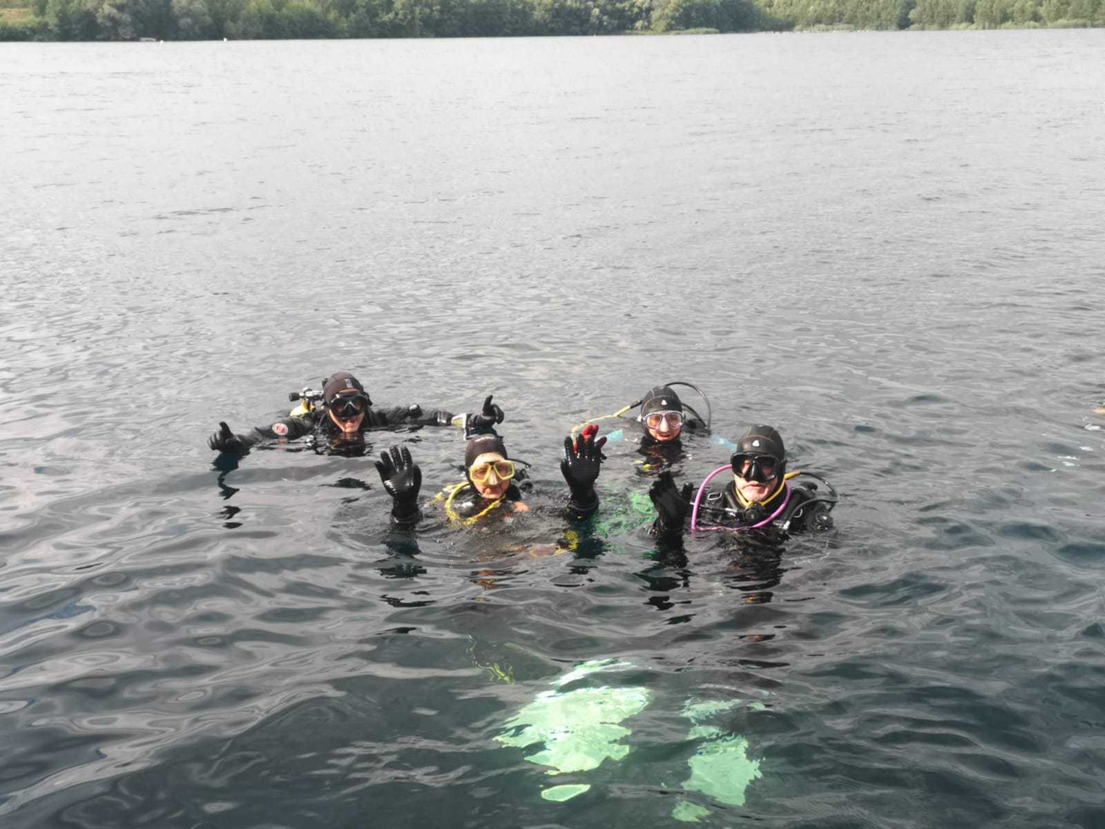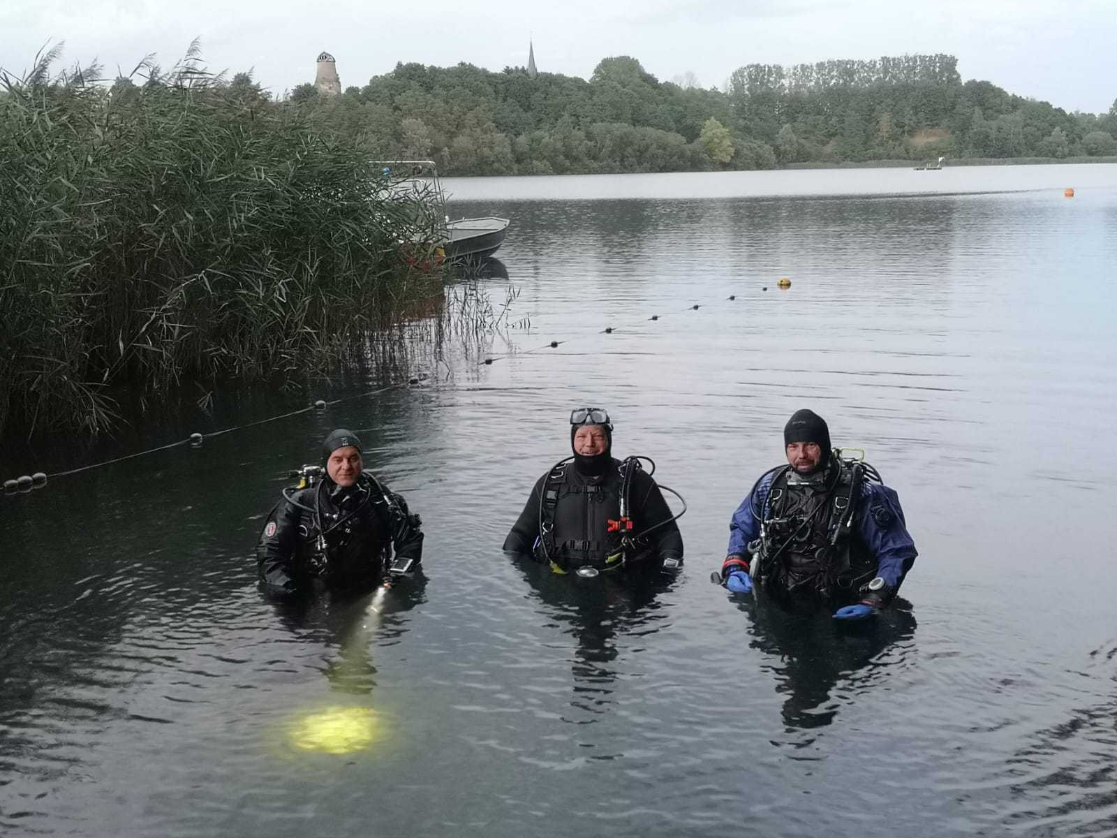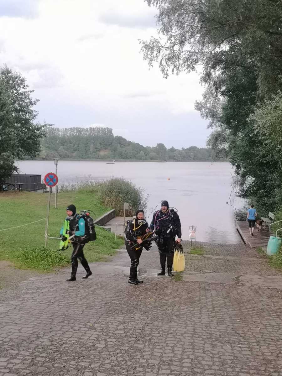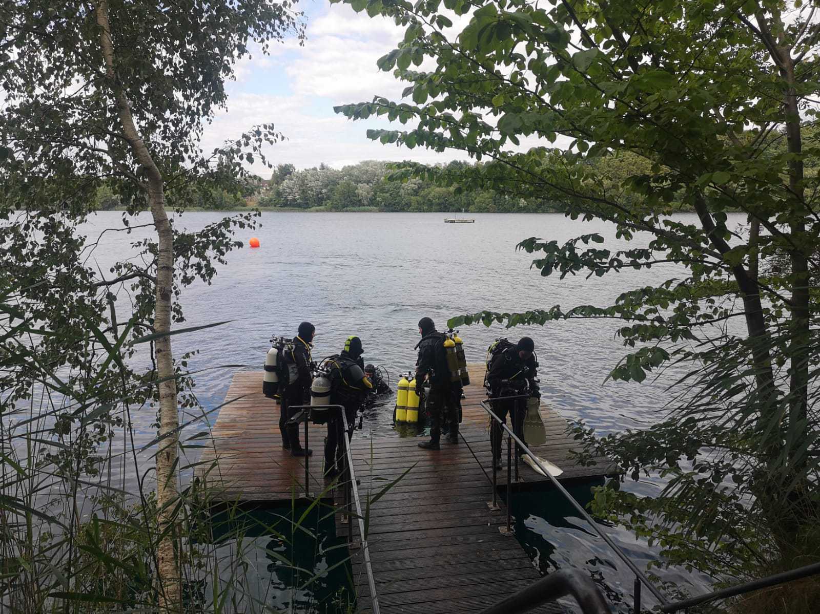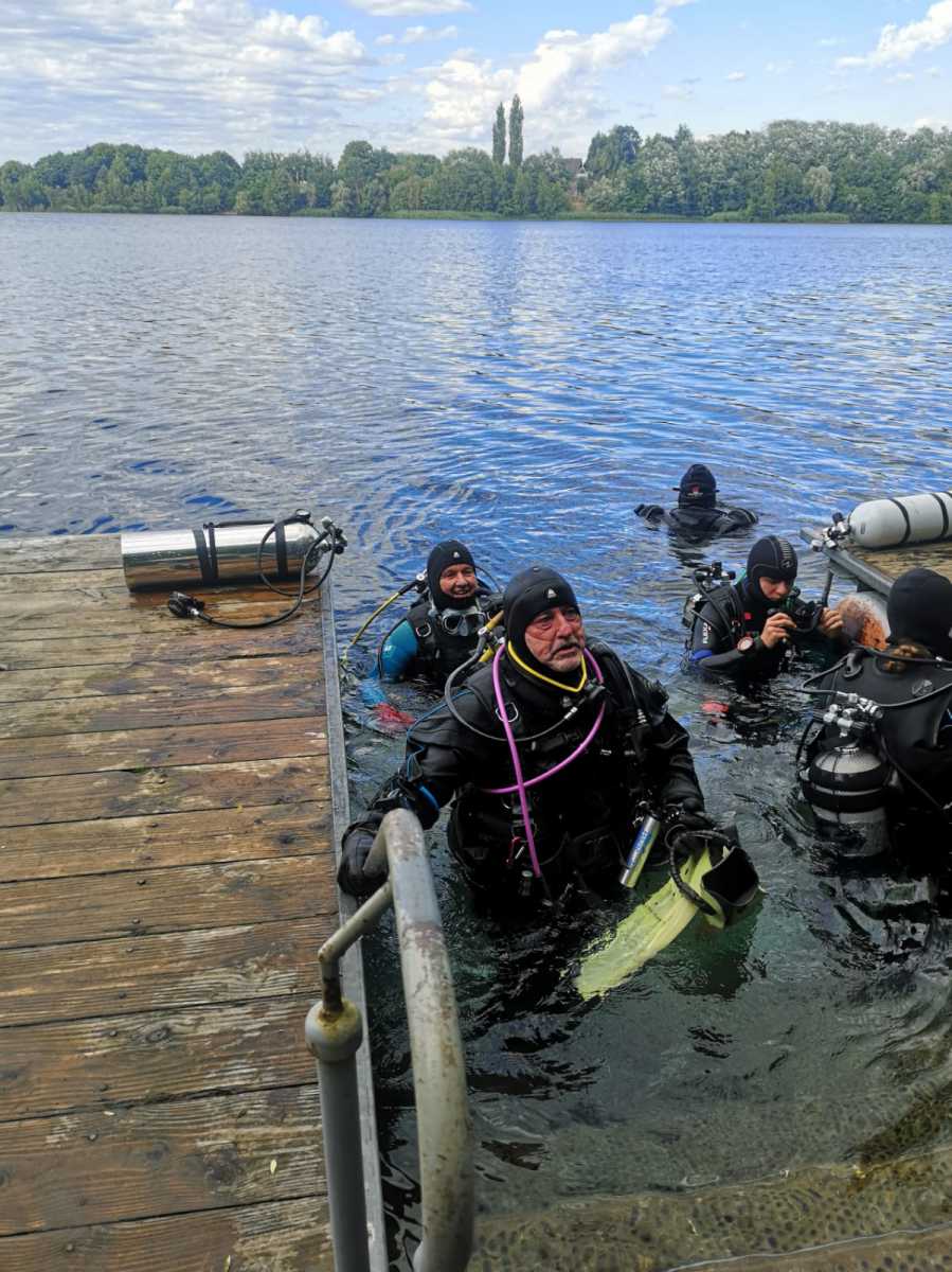Mit ca. 30 Tauchern war der Einstieg 1 gut gefüllt: Wir mussten sogar Schlange stehen, um ins Wasser zu kommen. So voll habe ich den Kreidesee noch nie erlebt.