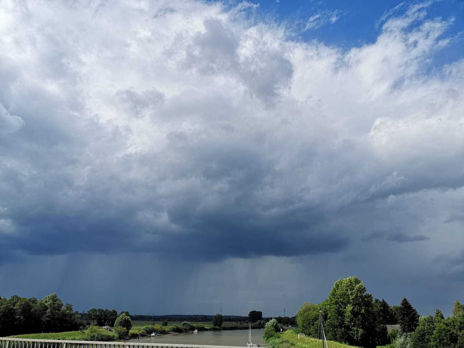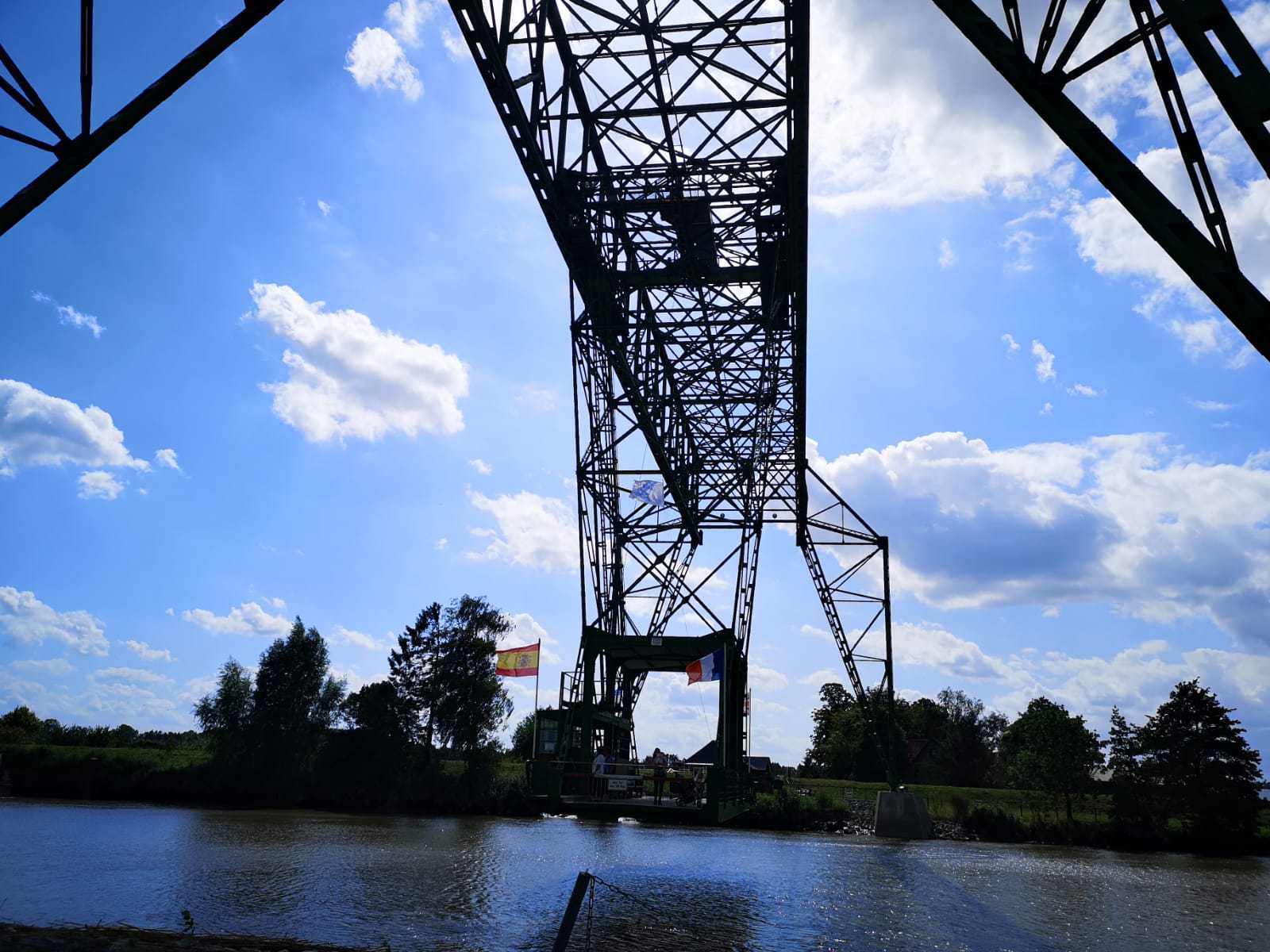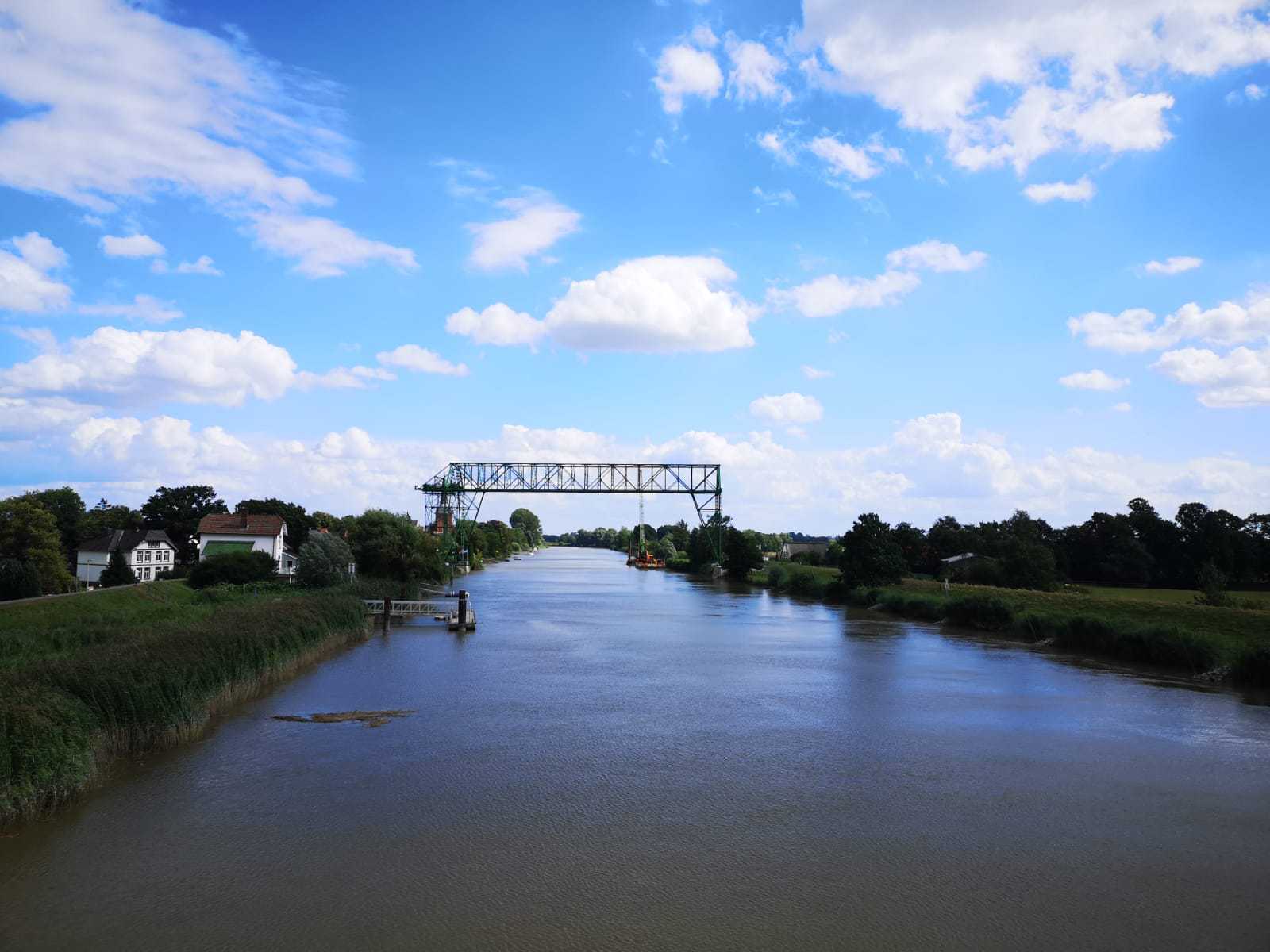 Da ich dieses Wochenende leider nicht tauchen konnte, bin ich am Samstag mit einem beim HGF-Haus für 5€ geliehenen Fahrrad 5km nach Osten, zur einzigen Schwebefähre Deutschlands gefahren und habe dort eine Fahrt für 2,50€ mit ihr über die Este gemacht. Auf dem Rückweg überraschte mich dann leider ein gewaltiger Regenguss.