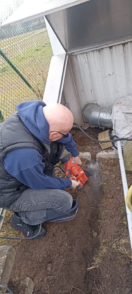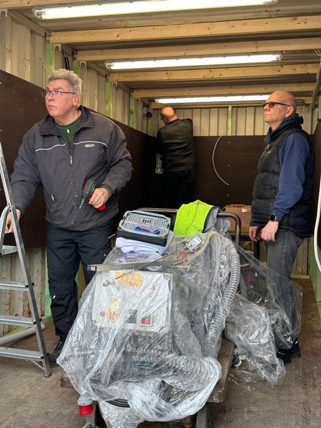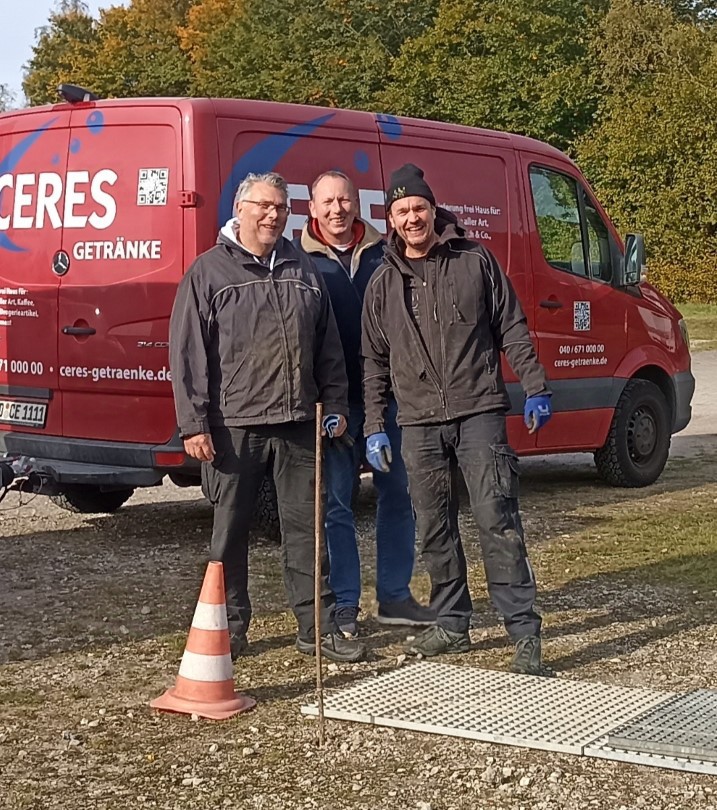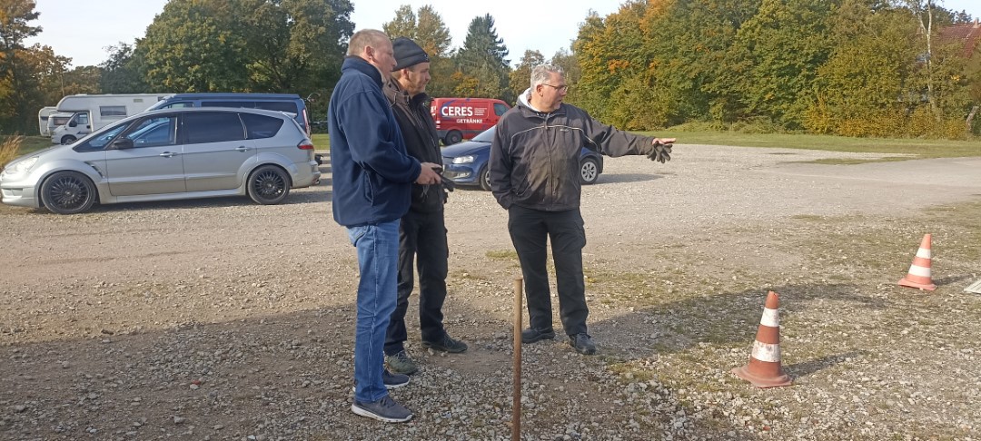 25.10.2024: Ein Early Drive zur Baustelle fand statt, bei dem das Zementbett für die Containeraufstellung gegossen wurde. Uwe, Dieter, Henry und Thorsten arbeiteten hart daran, das Gebiet zu vermessen und vorzubereiten. Ralf dokumentierte den Fortschritt fotografisch.