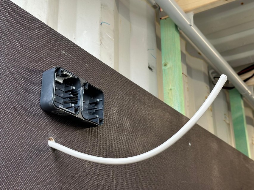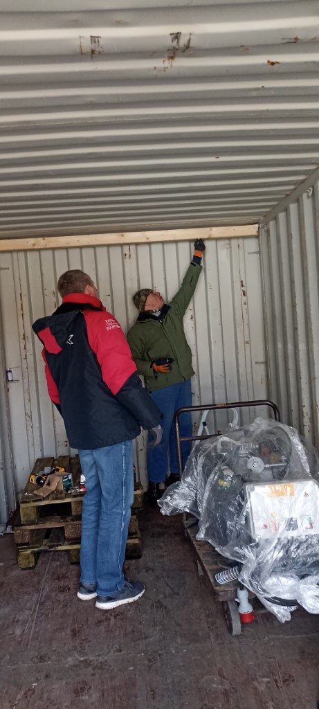 21.-23.2.2025: Die finalen Arbeiten für Licht und Kompressoranschluss am Container wurden durchgeführt. Olaf führte die Elektroninstallation durch, und es wurde viel gearbeitet, um die Projekte im Innenausbau abzuschließen.