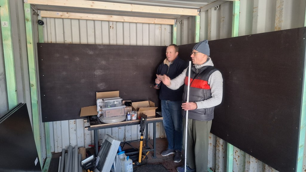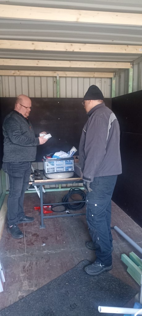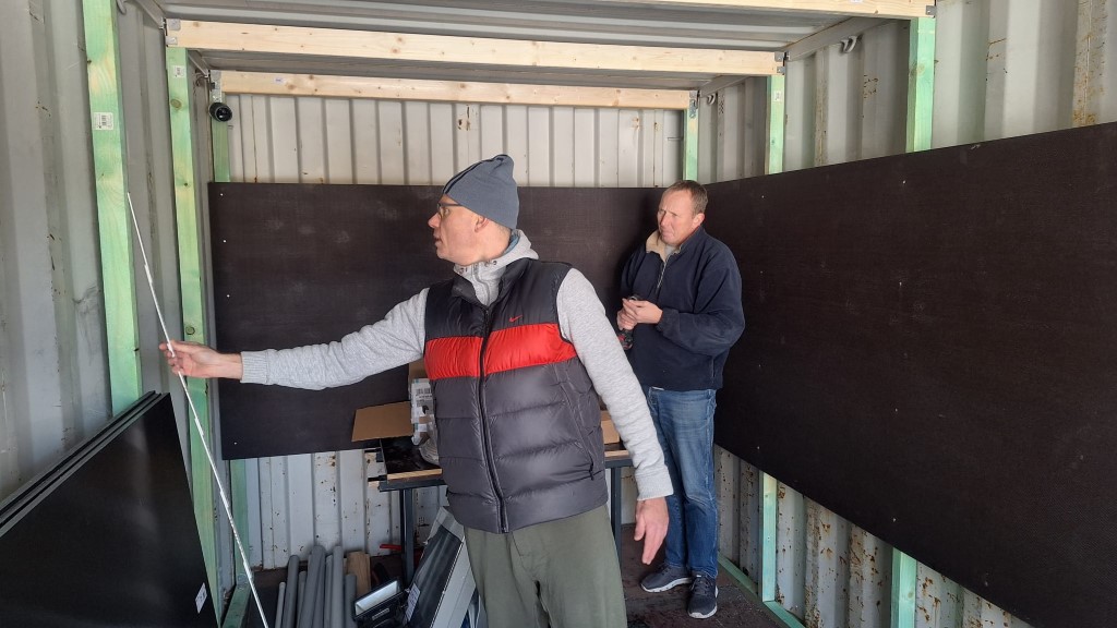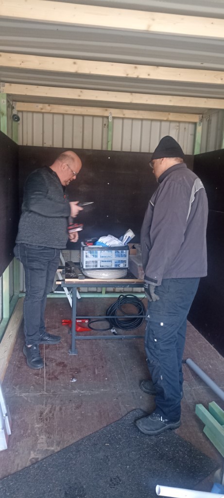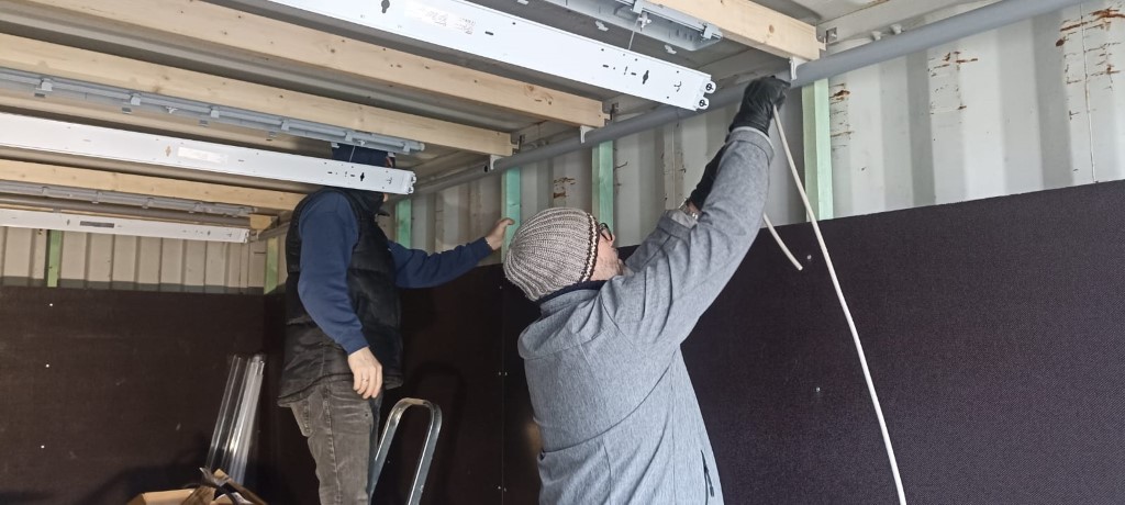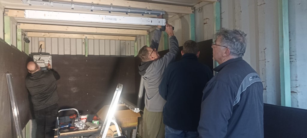 Dezember 2024: Die Containergruppe plante die Inneneinrichtung und besorgte Materialien trotz der Weihnachtszeit. Olaf Andresen kümmerte sich um die Elektroinstallation.