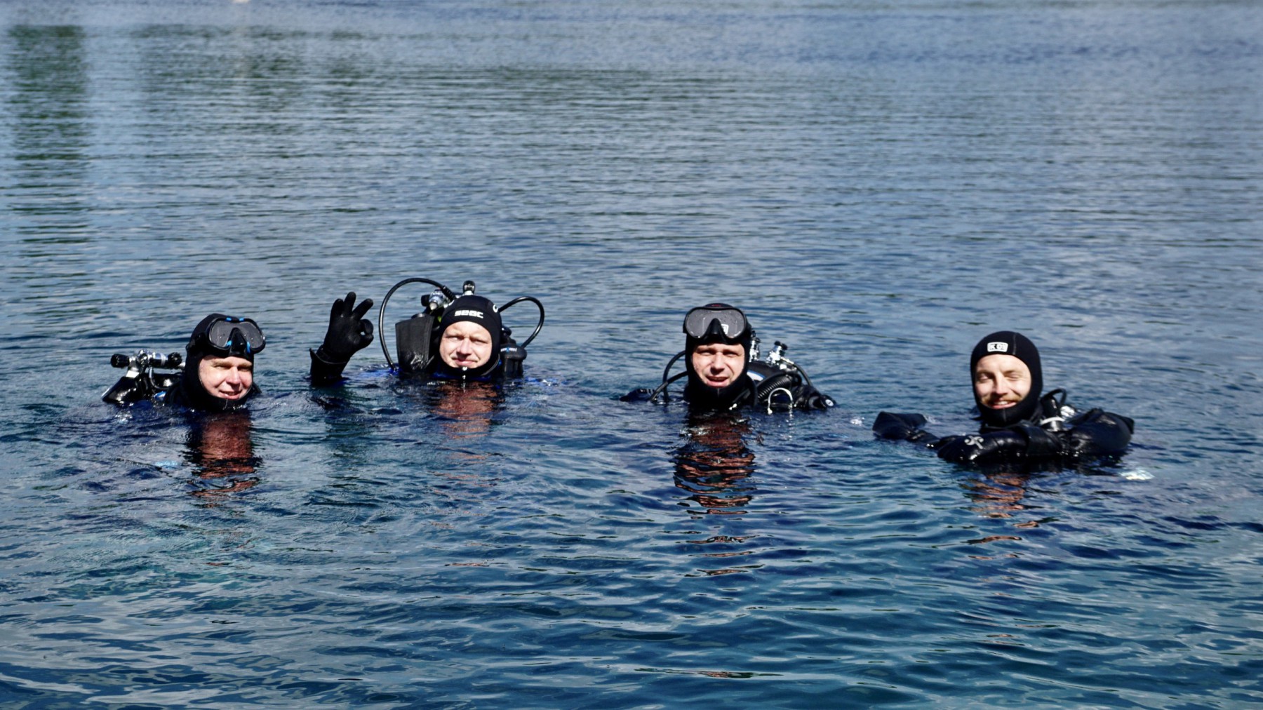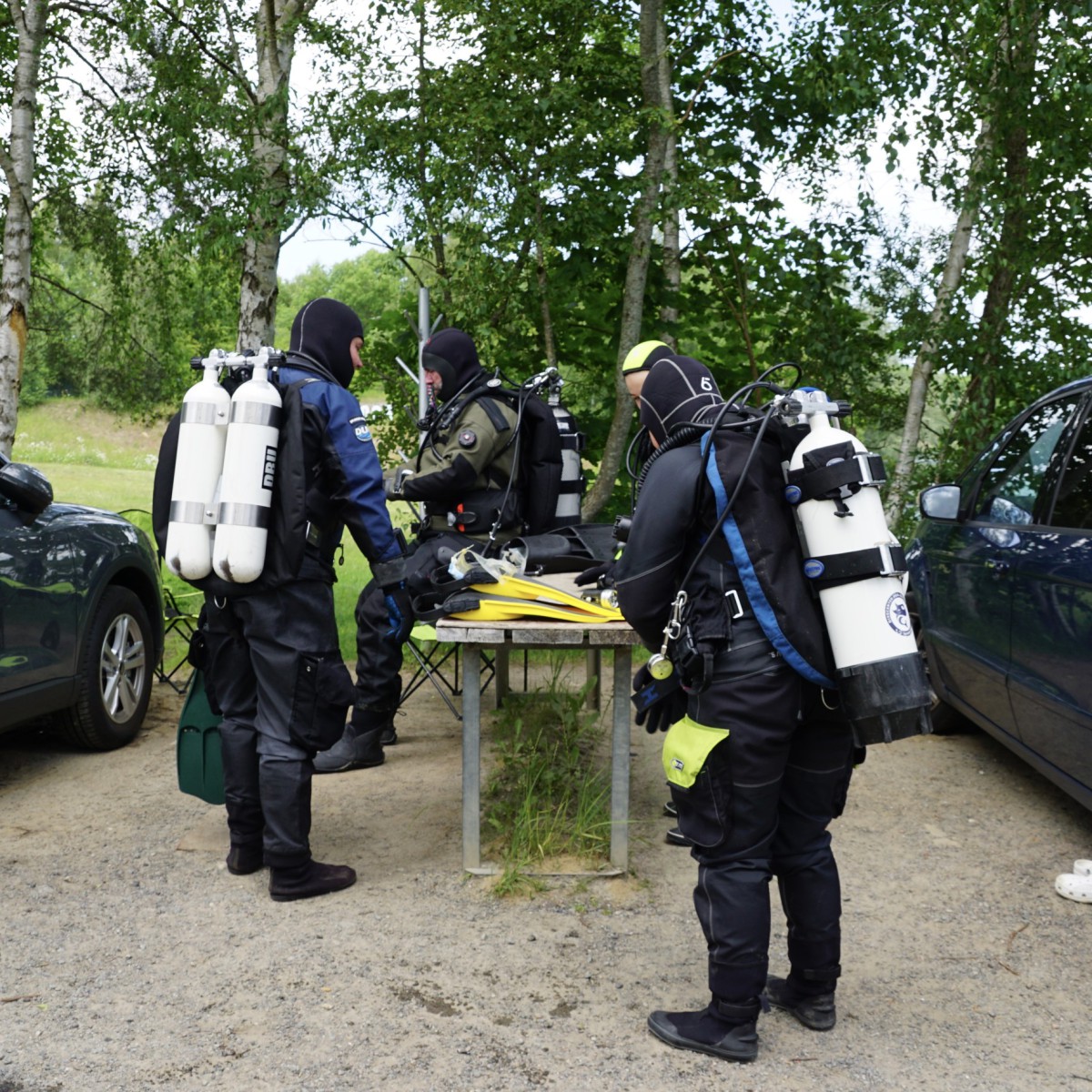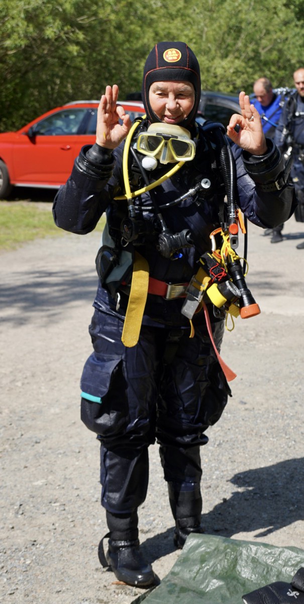 Ralph, Alexander und Viviana sollten mit Daniel die ersten Freiwassertauchgänge angehen. Dabei gab es kräftige Unterstützung von Simon und Martin. Insgesamt machten die drei 2 Tauchgänge und dabei einige der Bronzeübungen, wie die Maskenübung und Nachahmen der out of gas Situation. Die Übungen wurden beim Briefing mit den Dreien zunächst auf der Wiese durchgesprochen. Für die anderen aus dem TCV war es interessant dabei zuzusehen und wir stellten fest, dass auch die Erfahrenen Taucher diese Dinge immer wieder mal üben sollten.