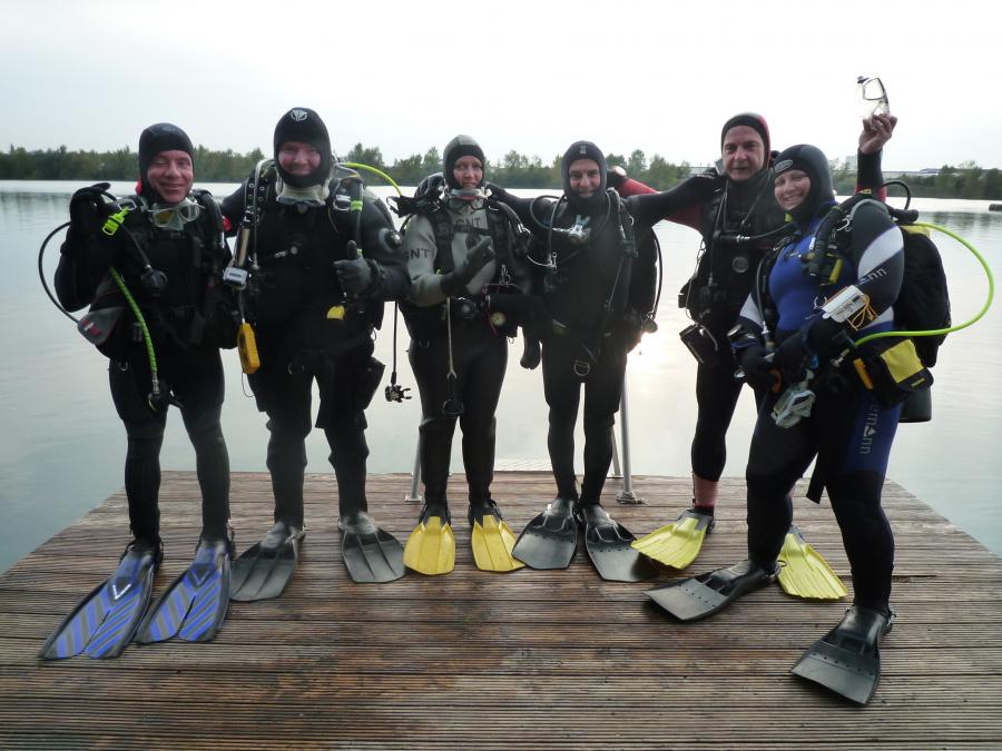 Das Tauchen in Hemmoor war wieder sehr schön, wenn auch die Sicht nicht ganz so gut war, aber das tat der wunderschönen, im Sonnenschein liegenden Unterwasserwelt gar keinen Abbruch. Fische gab es natürlich auch. Sehr beeindruckend war der Schwarm Rotfedern am Einstieg 1 und 2. Dort gab es bestimmt 100 Prachtexemplare und das ist nicht übertrieben. Da wurden die 3 Minuten Sicherheitsstopp zu einem wahren Vergnügen.