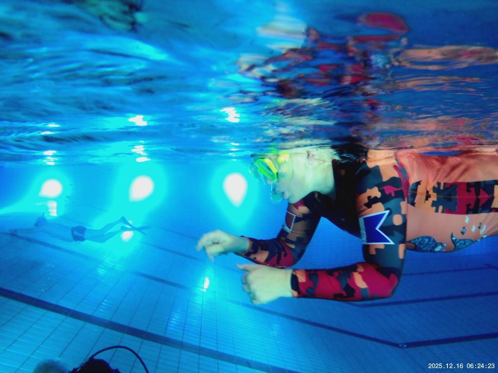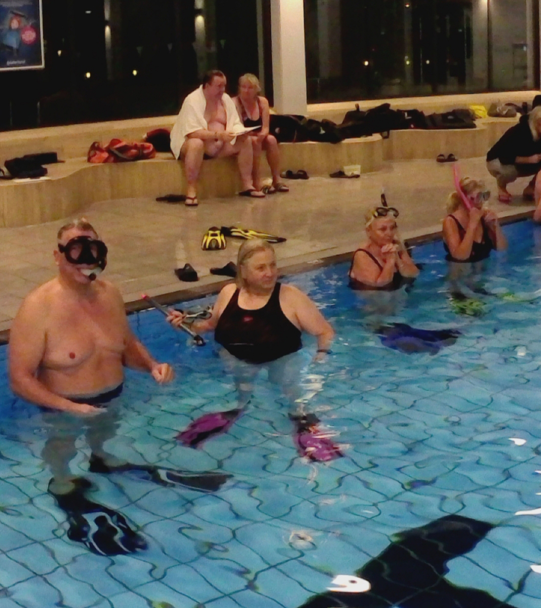 Die Untergruppe an der Startseite musste ihre farblich zugeordneten Zahlen in der richtigen Reihenfolge einzeln holen. Jede Zahl wurde nach dem Aufnehmen unter Wasser per Zeichen an die zugehörige Untergruppe auf der anderen Seite weitergegeben.